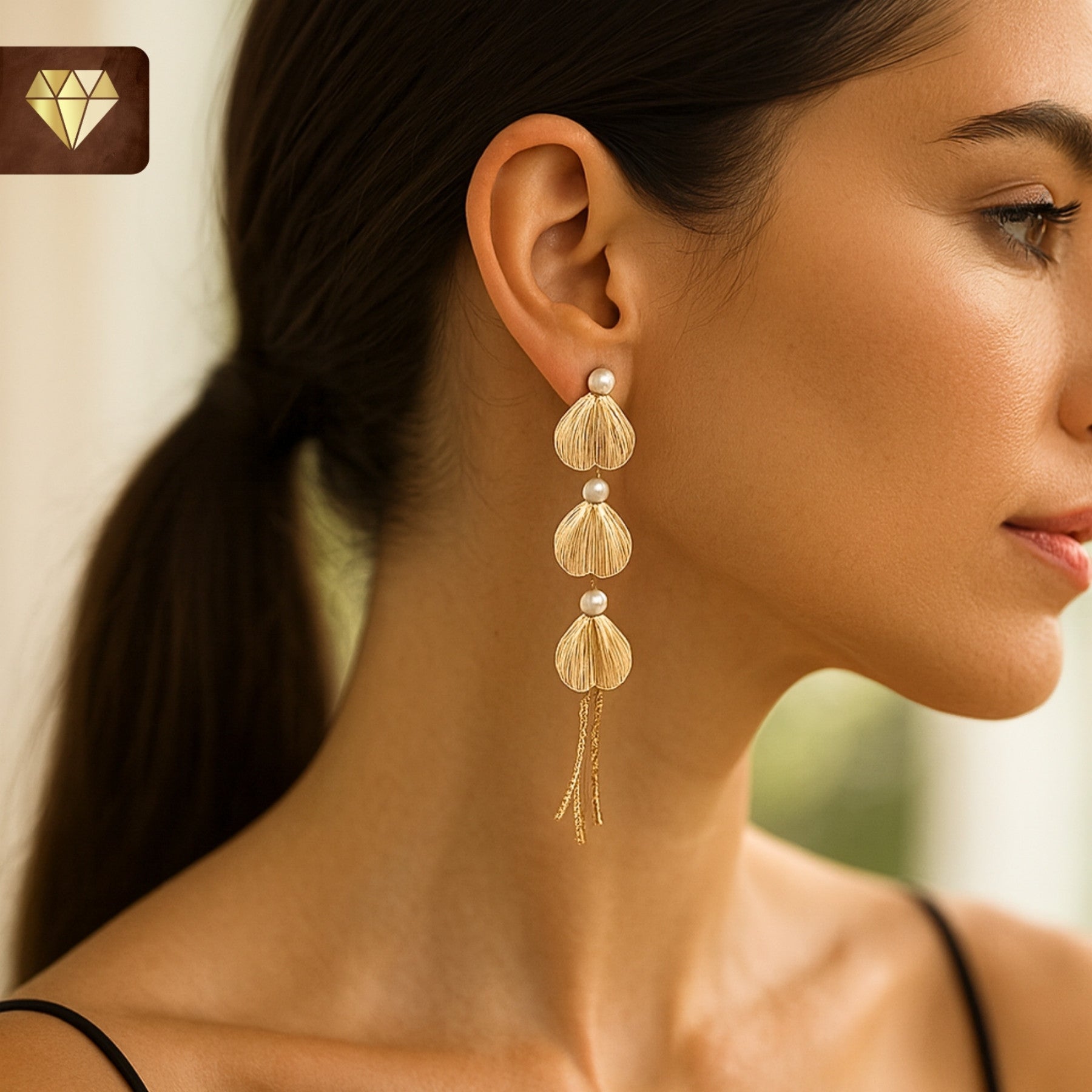 🌊✨ Make waves with these gold-plated fan shell earrings, accented with lustrous pearls and delicate tassels. A perfect mix of boho chic & modern elegance, ideal for parties, festive wear, or gifting. 💛🎁