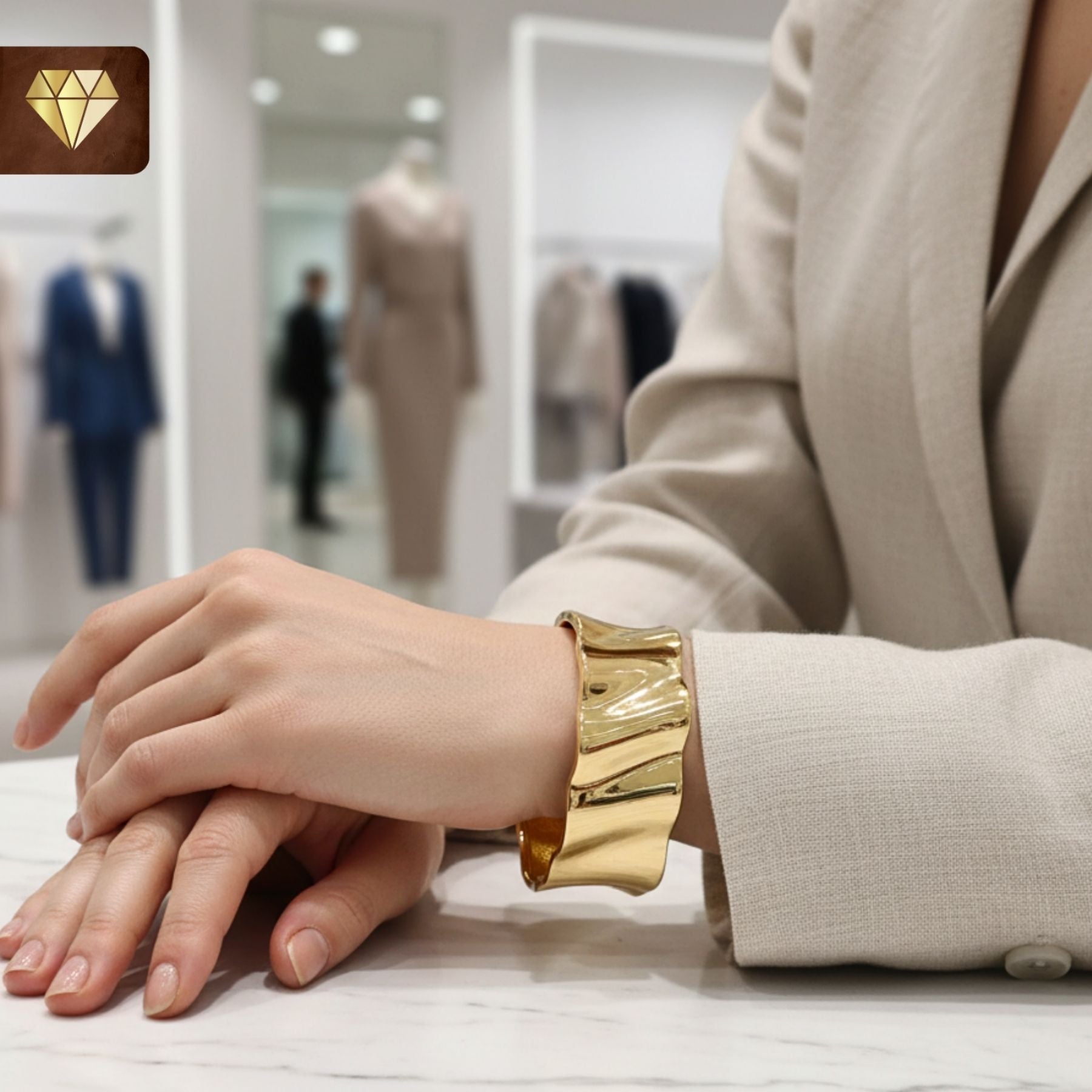 Make a bold statement with this broad gold-plated Kada bracelet, designed to bring modern elegance to every look.